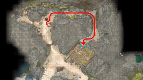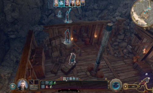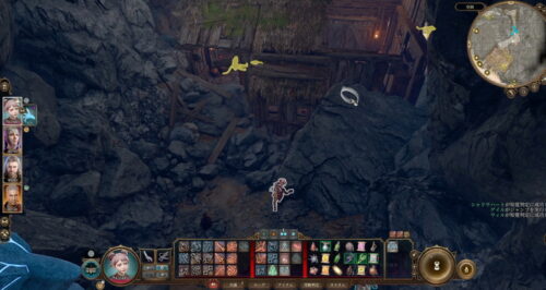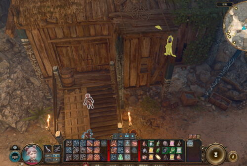 仮設の牢獄の奥から回って、パンディルナがいる小屋の裏の屋根から侵入します。