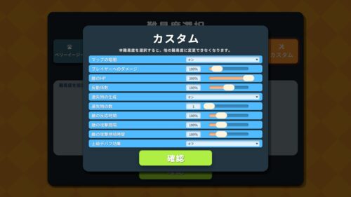 なので、友達と遊ぶ用のゲームデータを作る際は、難易度設定から「カスタム」を選ぶのがオススメです。
