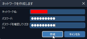 任意の「ネットワーク名」と「パスワード」を設定し、作成したら友達にそれを伝えます。