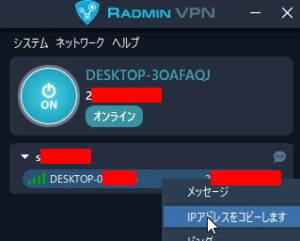 参加できたら、右クリックメニューから「IPアドレスをコピーします」を押下してコピーしておきます。