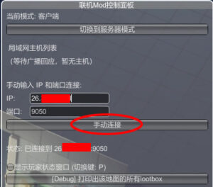 参加する側は、コピーしたIPアドレスを「IP:」に張り付けして、赤丸のボタンをクリックすれば完了です!