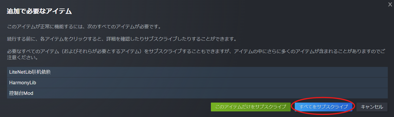 追加で必要なアイテムが表示されるので「すべてをサブスクライブ」を押下。