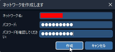 任意の「ネットワーク名」と「パスワード」を設定し、作成したら友達にそれを伝えます。